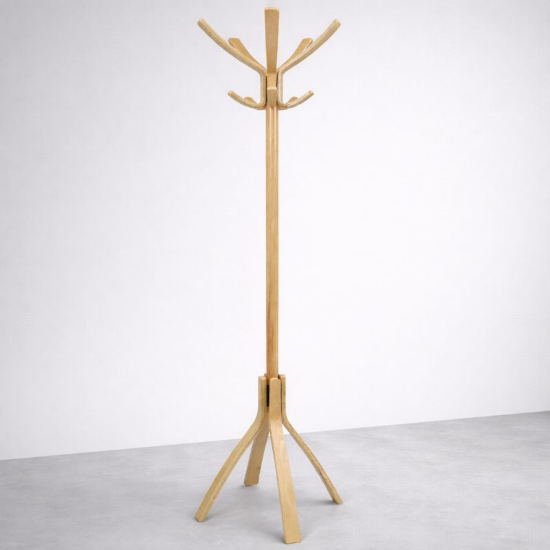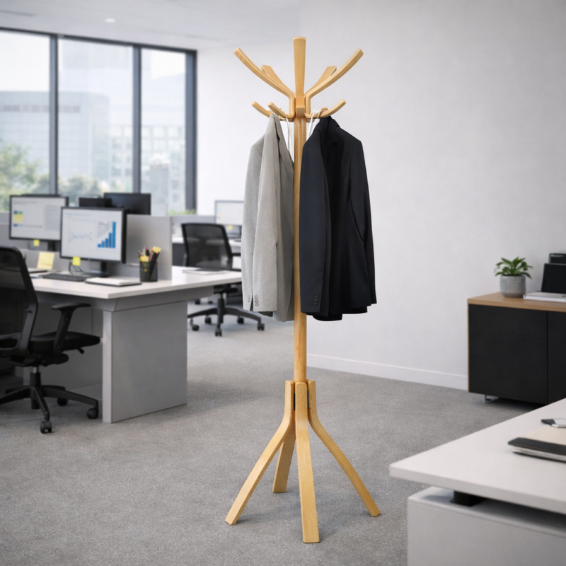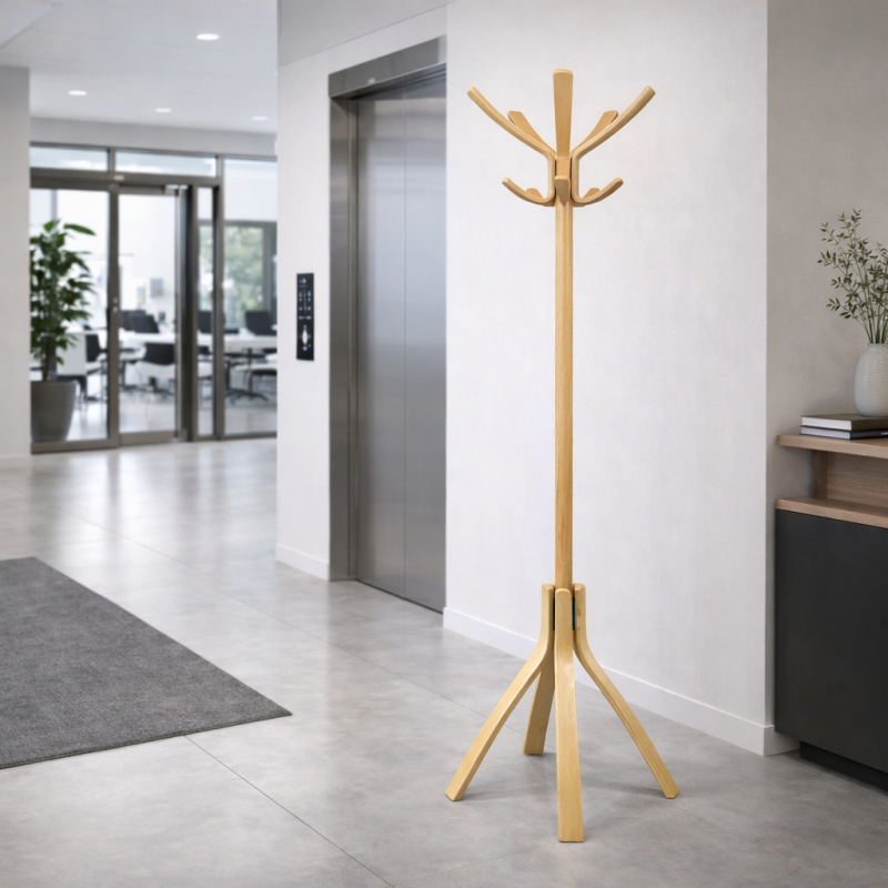 Conçu entièrement en bois, ce porte-manteau design pour bureau combine esthétique naturelle et robustesse.