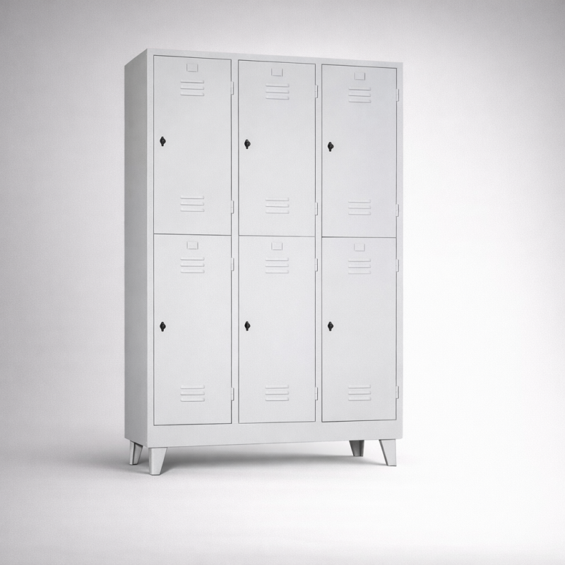 Ce vestiaire 6 casiers est organisé en 2 colonnes de 3 cases, permettant d’optimiser l’espace dans les vestiaires collectifs.
