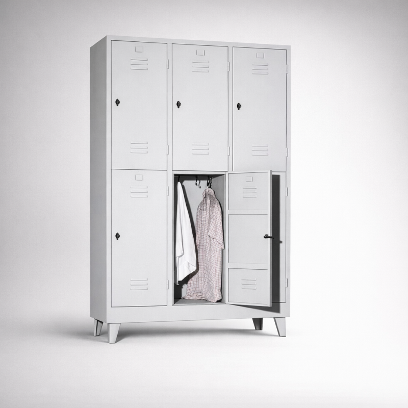Conçu en tôle d’acier avec finition peinture époxy, ce vestiaire professionnel offre une excellente résistance aux chocs, à l’humidité et à l’usage intensif.