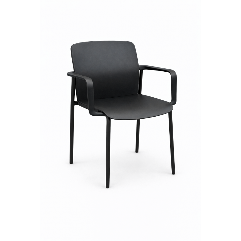 Ce siège noir séduit par son design minimaliste, sa légèreté visuelle et sa grande facilité d’intégration. Entièrement conçu en plastique noir, avec accoudoirs fins et une structure 4 pieds noirs, il constitue une solution pratique et esthétique pour les environnements professionnels exigeants.