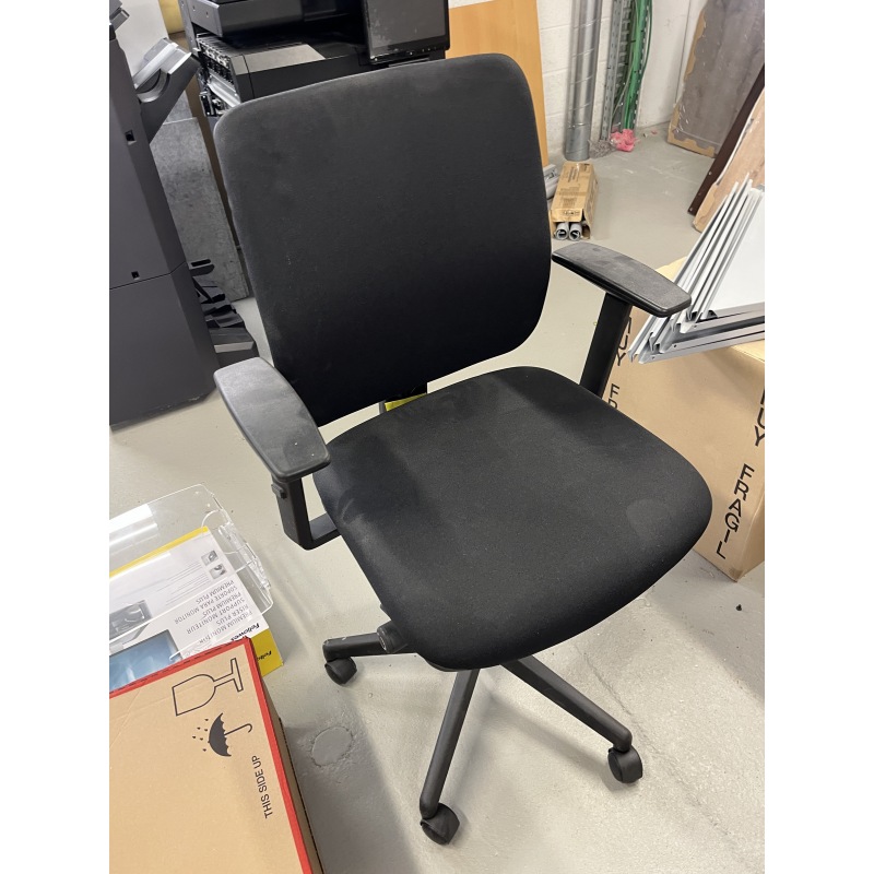 Cette chaise de bureau avec assise noire, dossier en tissu noir et accoudoirs en plastique noir combine confort, soutien et robustesse. Les pieds noirs avec roulettes permettent une mobilité facile et une adaptation parfaite à vos besoins professionnels. Parfaite pour vos bureaux, open spaces ou espaces de coworking, elle assure confort et maintien même lors d’une utilisation prolongée.