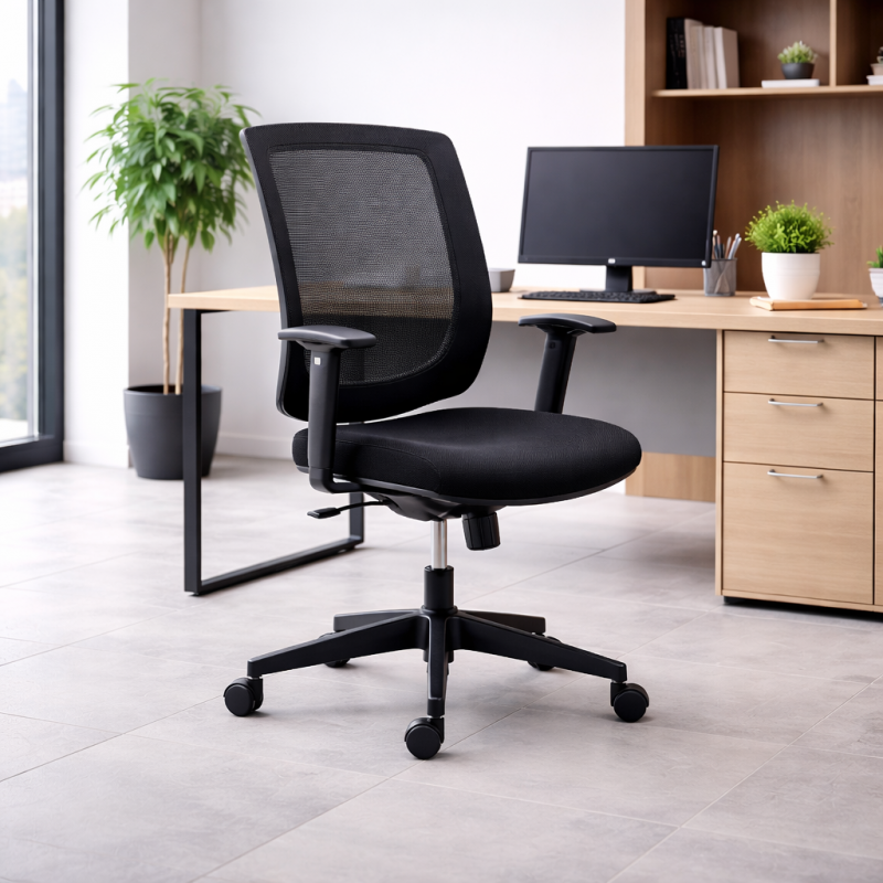 Ce siège de bureau ergonomique est conçu pour offrir un confort optimal et un maintien efficace dans les environnements professionnels. Compact et fonctionnel, il s’adapte parfaitement aux postes de travail nécessitant une solution fiable et performante.