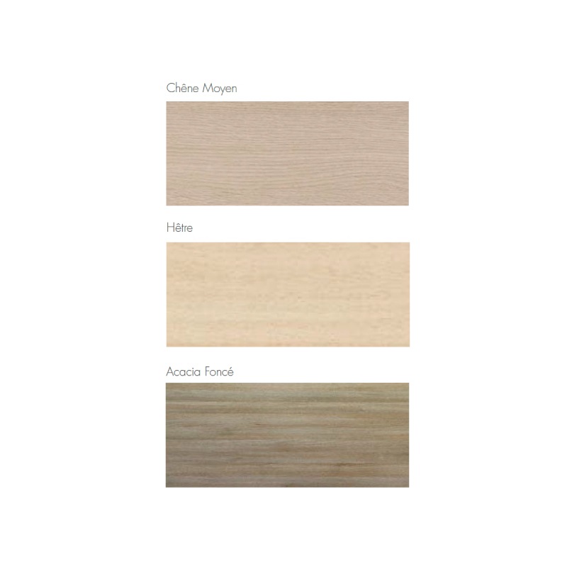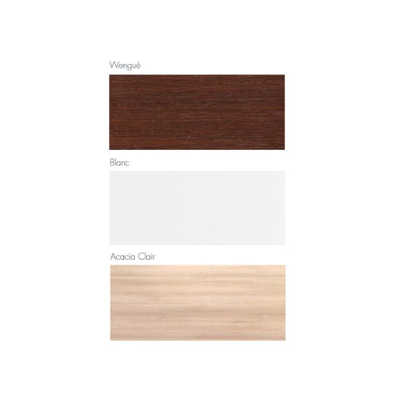 Finitions disponibles : blanc, acacia clair, chêne moyen, wengé, anthracite, poirier