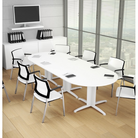 Avec ses lignes douces et son piétement central en croix, la Sigma ovale conjugue esthétisme et performance. Son plateau mélaminé de 25 mm d’épaisseur assure une excellente résistance dans le temps, tandis que les vérins intégrés garantissent une parfaite stabilité, même sur sol irrégulier. Disponible en plusieurs longueurs (de 200 à 500 cm) pour accueillir de 6 à 18 personnes, elle s’intègre aussi bien dans les salles de réunion design que dans des espaces de direction ou de coworking haut de gamme.