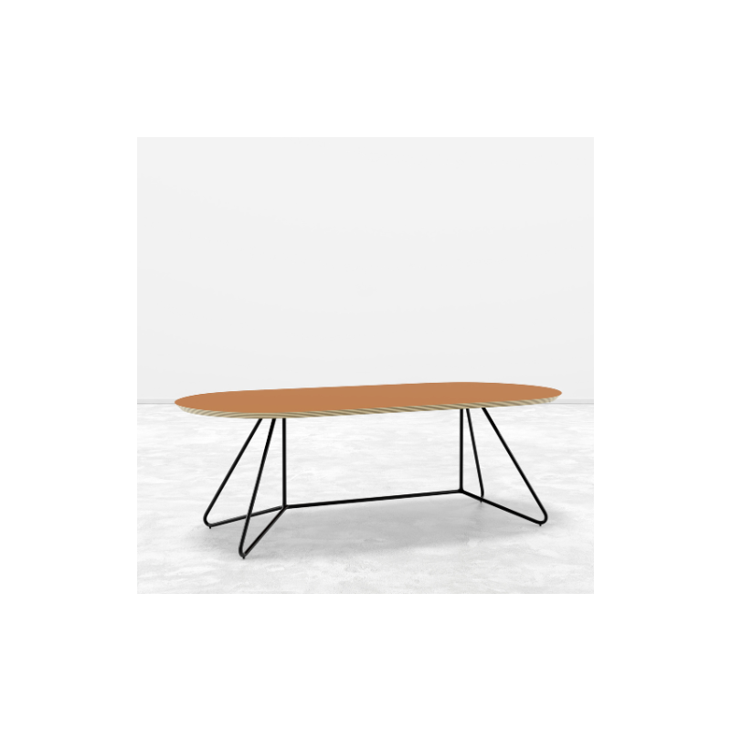 Mixez plusieurs tables Sharp 2 de formes différentes pour créer une composition dynamique et contemporaine, tout en gardant une unité grâce au piètement graphique commun.